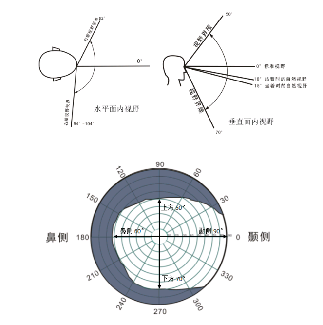 顳側(cè)視野范圍一般為90°以上