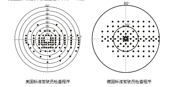 本款程序的設(shè)計(jì)原理是基于美國(guó)標(biāo)準(zhǔn)駕駛員檢查程序,并增加了水平視野的檢查范圍(160°)。